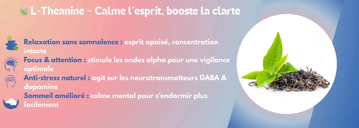 Apaise l'esprit sans effet sédatif. Procure une relaxation mentale sans somnolence.