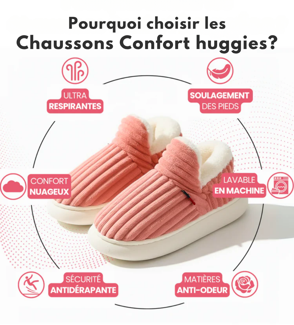Avec Huggies™, vos pieds restent au chaud dès le premier pas. La doublure polaire épaisse retient la chaleur sans étouffer, offrant un confort durable du lever au coucher. Parfaits pour les matinées fraîches comme pour les soirées cocooning.