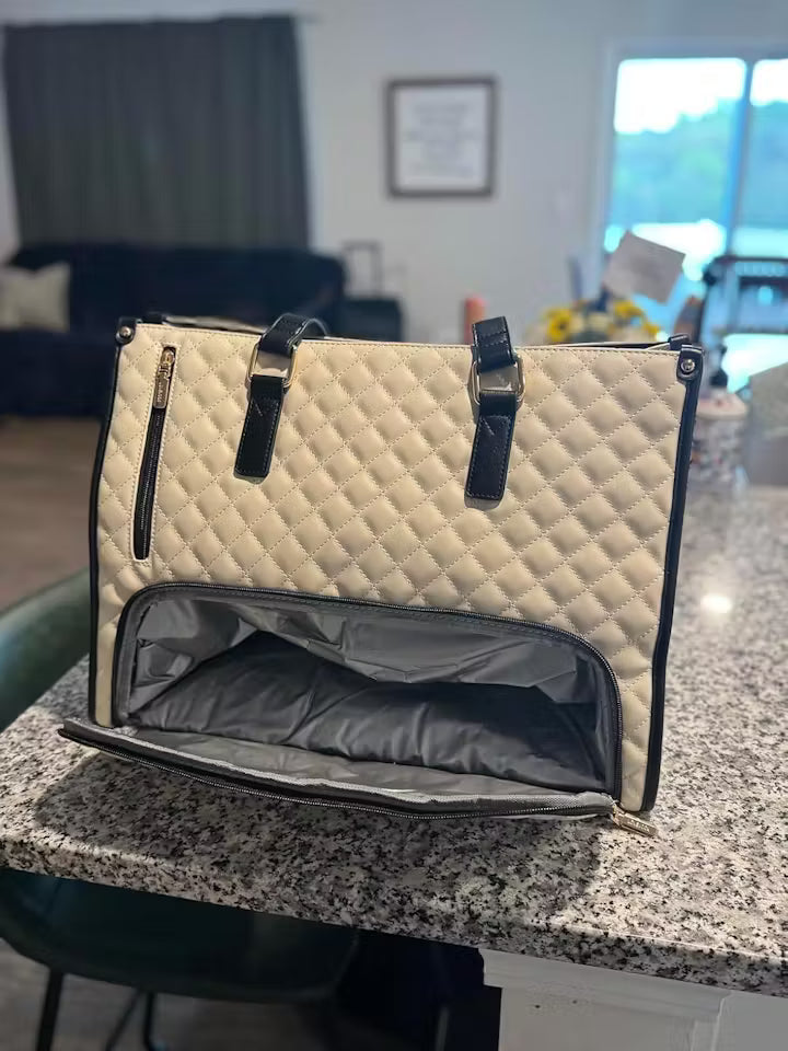 Chaque détail de Lunavera™ est pensé pour la vie moderne. Le compartiment isotherme dissimulé garde votre repas frais sans compromettre ni l’espace ni le style. Une pochette rembourrée protège votre ordinateur, tandis que le compartiment principal accueille documents, maquillage et accessoires. Enfin — un sac qui fait tout, avec élégance.