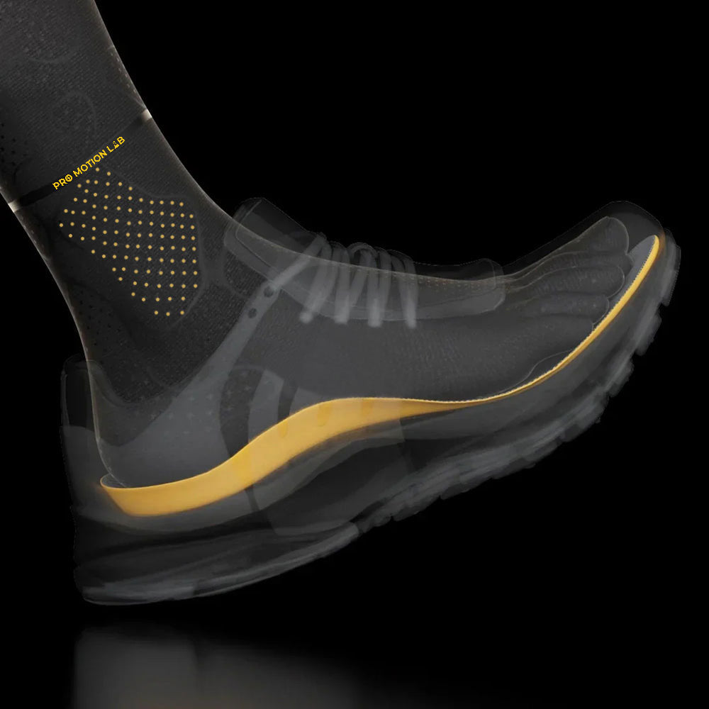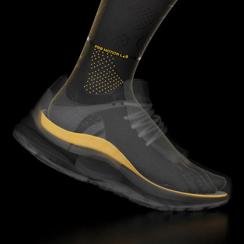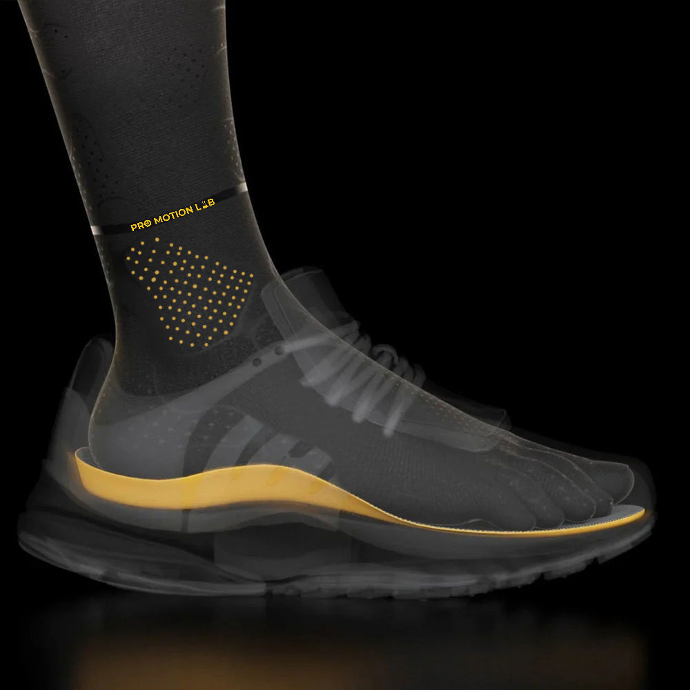 Lors de la phase d'appui du pied, les semelles en carbone offrent un soutien optimal et une stabilité accrue. Une torsion ou une inclinaison du pied peuvent entraîner des blessures ; les semelles Pro Motion aident à réduire considérablement ce risque.